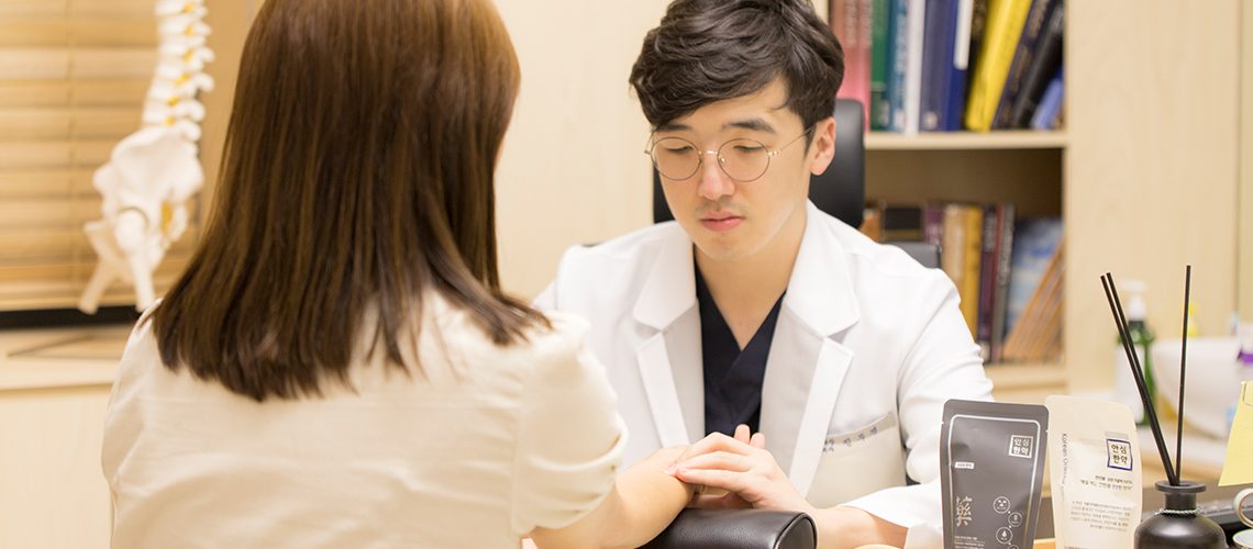 각 검사 결과를 토대로 원장님과 상담을 진행합니다. 고운몸한의원은 원장님을 포함한 의료진이 직접 심층상담을 진행하고 설문지를 통해 파악하여 개인별 맞춤 티칭 및 단계 처방을 수립합니다.